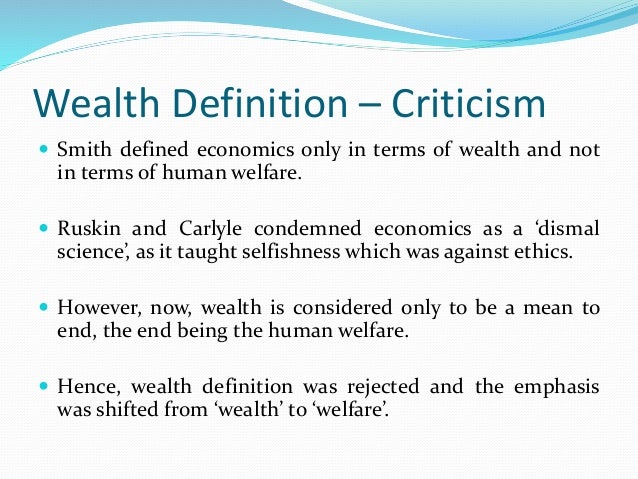 A critical reassessment of some central components of his thought. 5 main criticisms against wealth definition of adam smith. The wealth of nations goes on to describe the principal elements of the economic system.