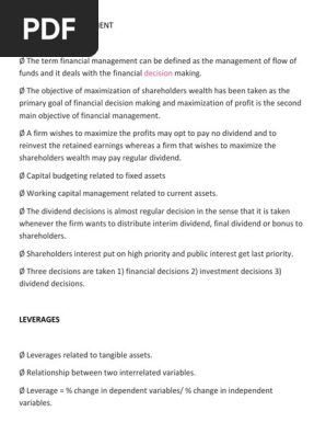 Wealth maximization is long term process. 3 d's of financial decisions. The ultimate goal of financial management is to maximize the wealth of its shareholders.